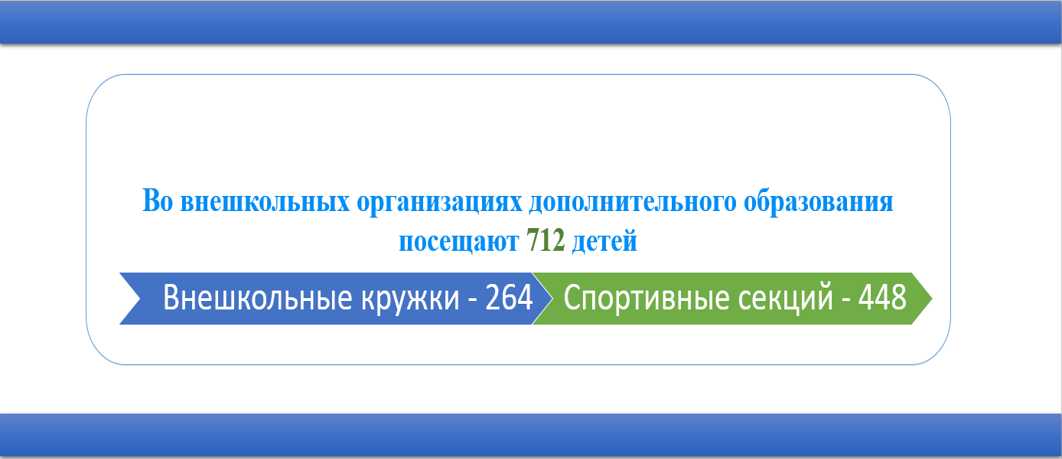 Внешкольные организации посещают 712 детей, что составило 60 %.